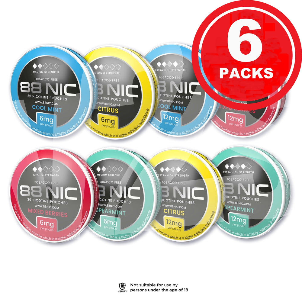88 Nic pouches provide a quick, discreet and convenient way of satisfying your nicotine cravings. Containing no tobacco and producing no smoke or vapour, nicotine pouches can be used anywhere at any time with no restrictions.