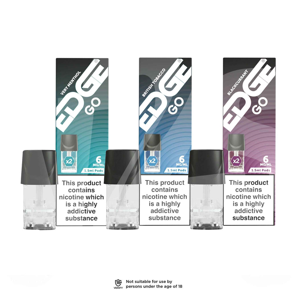 The GO Pods developed especially by EDGE are available in a range of nicotine strengths, suitable for all your vaping needs. With a choice of 0mg 3mg, 6mg, 12mg or 18mg, you can find the perfect e-cigarette flavour with the exact nicotine strength you desire to satisfy your cravings.