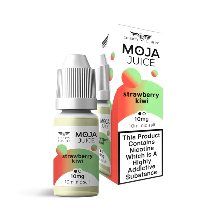Our MOJA Juice is the ultimate range of 10ml nicotine salt e-liquids, bursting with flavour, our unique formula is designed to provide the same flavour as disposable vapes. Our MOJA Juice e-liquids come in a 50/50 PG/VG ratio, meaning they have equal parts vegetable glycerine and propylene glycol, creating a strong throat hit and great flavour in each vape. Choose between nicotine strengths of 10mg and 20mg for your perfect vaping experience. Our MOJA Juice's are a great choice for someone new to vaping, the strong throat hit helps replicate that of smoking a cigarette and the high nicotine strengths available will satisfy your nicotine cravings.
