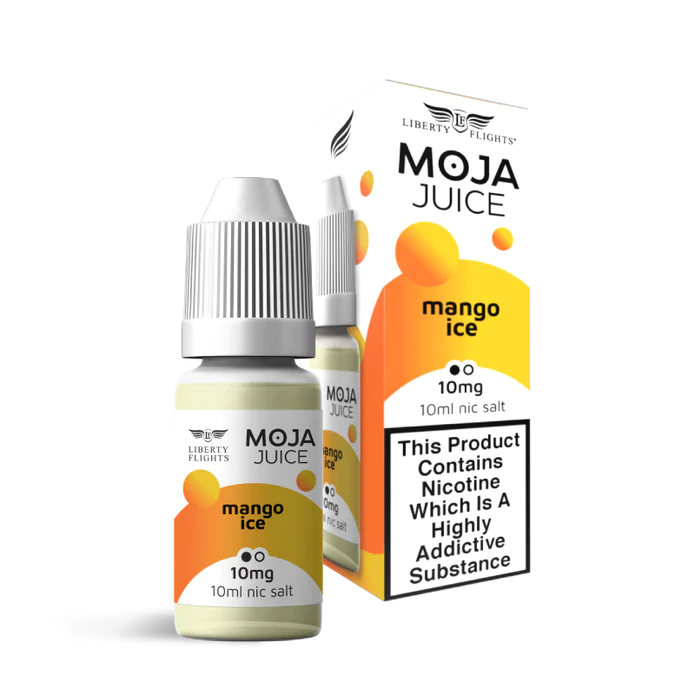 Our MOJA Juice is the ultimate range of 10ml nicotine salt e-liquids, bursting with flavour, our unique formula is designed to provide the same flavour as disposable vapes. Our MOJA Juice e-liquids come in a 50/50 PG/VG ratio, meaning they have equal parts vegetable glycerine and propylene glycol, creating a strong throat hit and great flavour in each vape. Choose between nicotine strengths of 10mg and 20mg for your perfect vaping experience. Our MOJA Juice's are a great choice for someone new to vaping, the strong throat hit helps replicate that of smoking a cigarette and the high nicotine strengths available will satisfy your nicotine cravings.