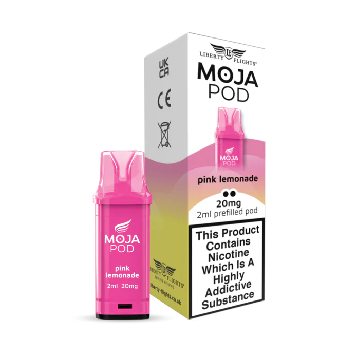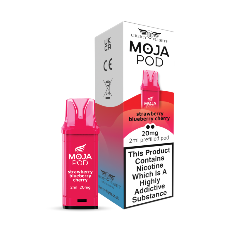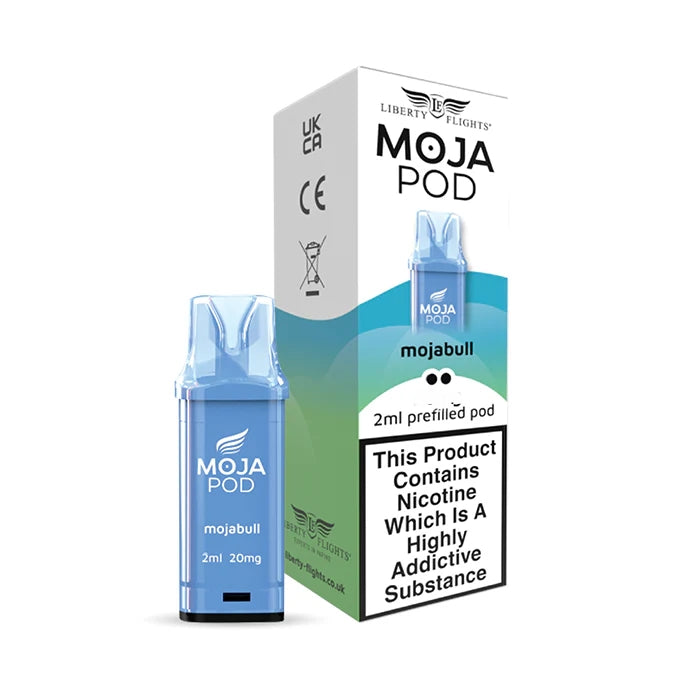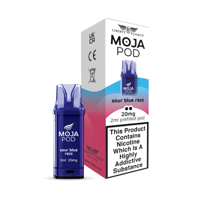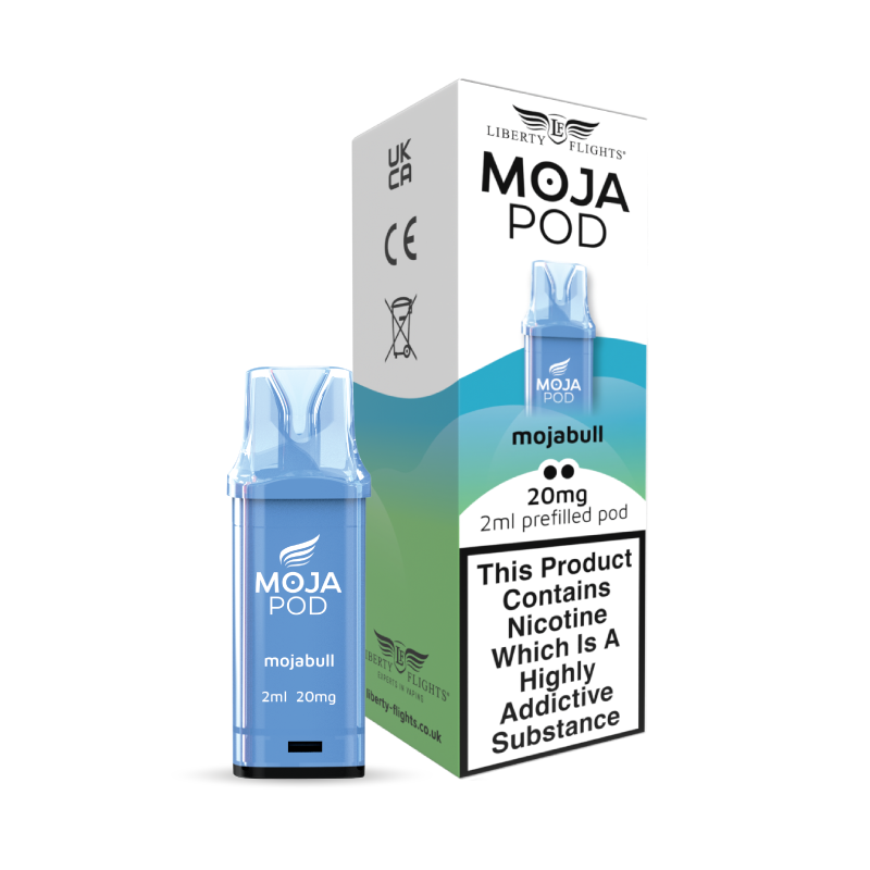 Our MOJA Pod range is available in two great flavours; Sour Blue Razz and Pink Lemonade and our Refill Pods available in 18 flavours. Each MOJA Pod Kit comes with a 500mAh re-chargable battery and a MOJA Pod with 2ml of 20mg nicotine salt e-liquid, creating a smooth high strength vape everytime, delivering up to 600 puffs per pod.