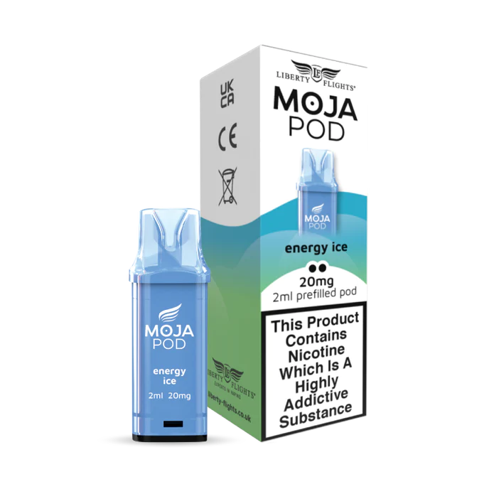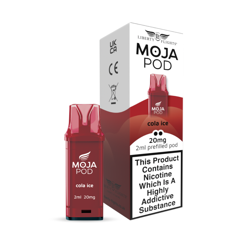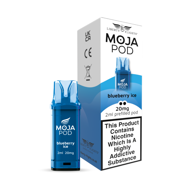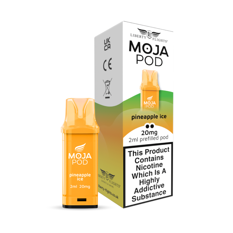 The MOJA Pod is a stylish, easy to use and colourful pod, perfect for those wanting to start their vaping journey or an experienced vaper looking for a discrete and lightweight vape. Each MOJA Pod Kit and Refill Pod kit comes pre-filled with 2ml of nicotine and a 500mAh re-chargeable battery.