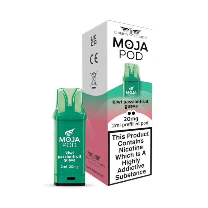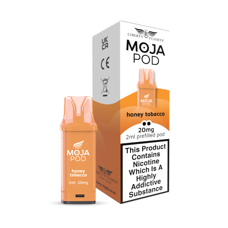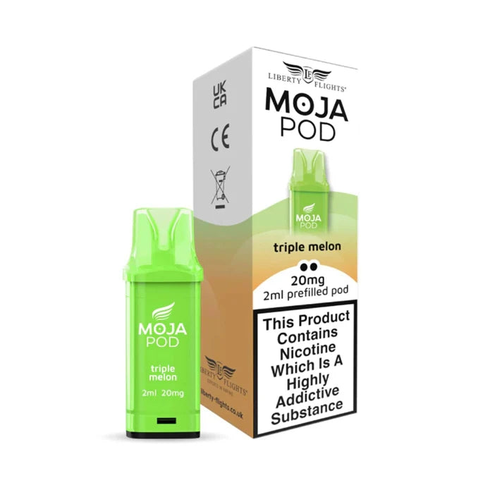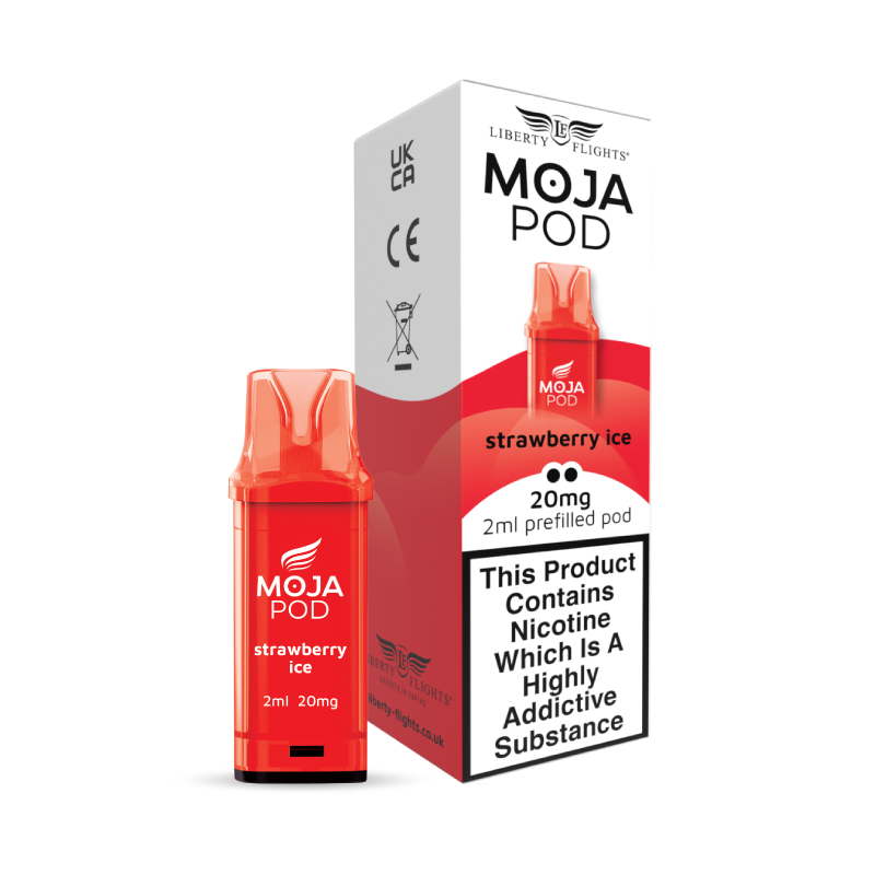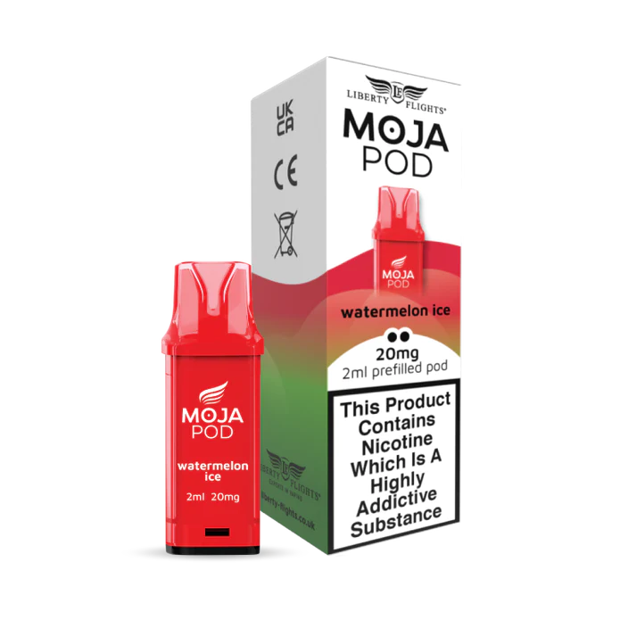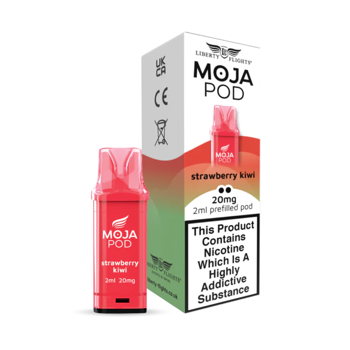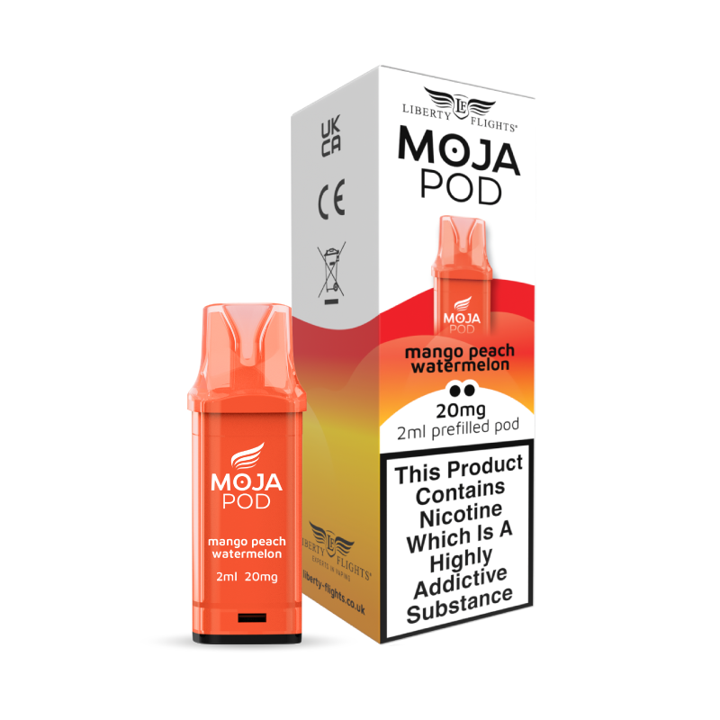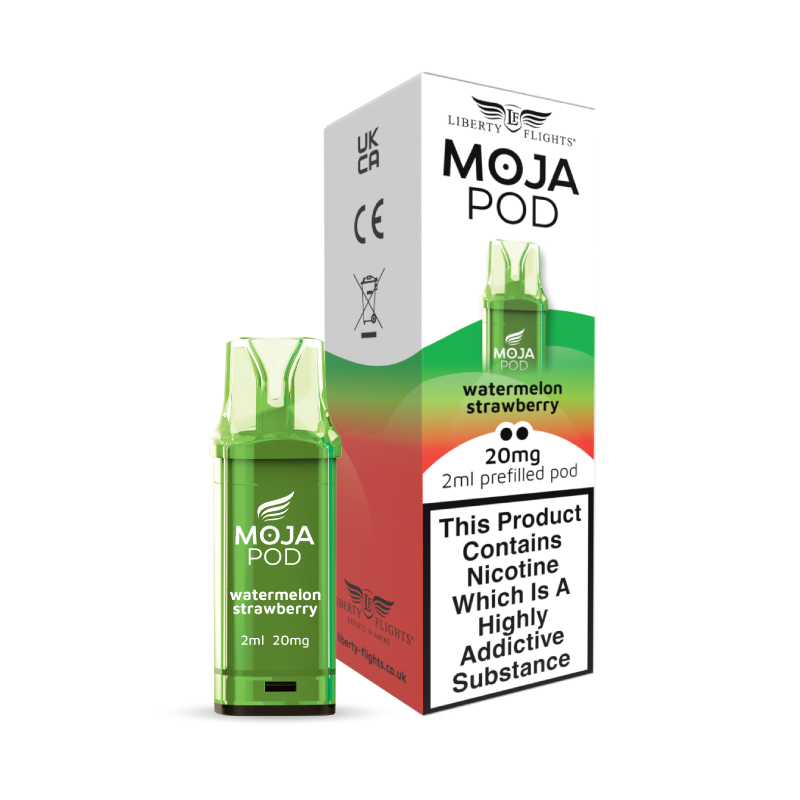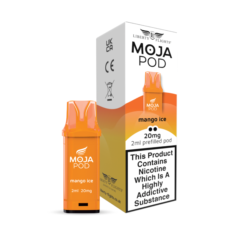 Get the feeling and flavour of vaping a disposable with the MOJA Pod, instead with a re-chargeable battery and the option to interchange your flavours. Each Pod has 20mg nicotine for a smooth nicotine hit.