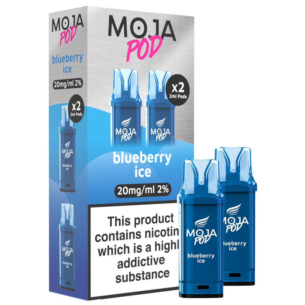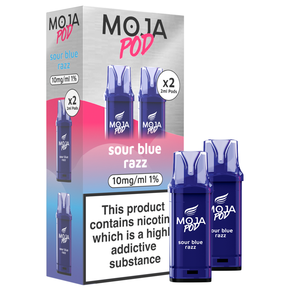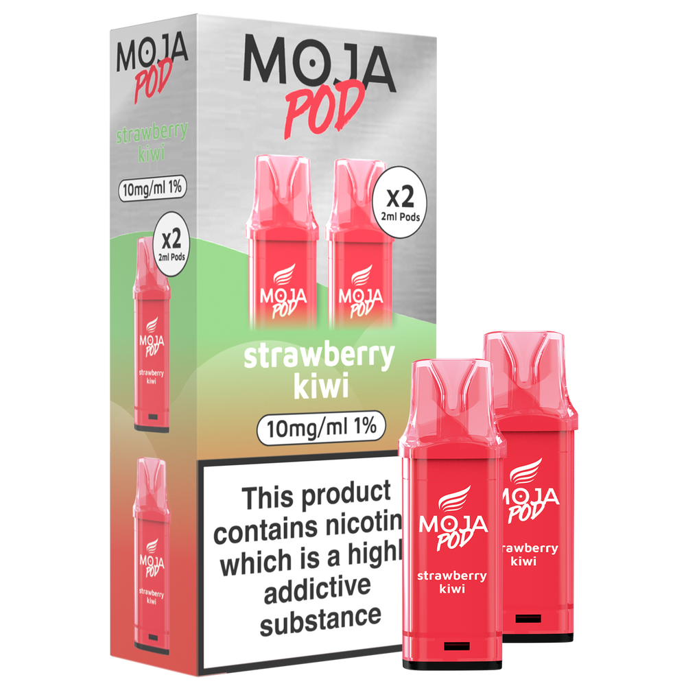 The MOJA Pod is a stylish, easy to use and colourful pod, perfect for those wanting to start their vaping journey or an experienced vaper looking for a discrete and lightweight vape. Each MOJA Pod Kit and Refill Pod kit comes pre-filled with 2ml of nicotine and a 500mAh re-chargeable battery.