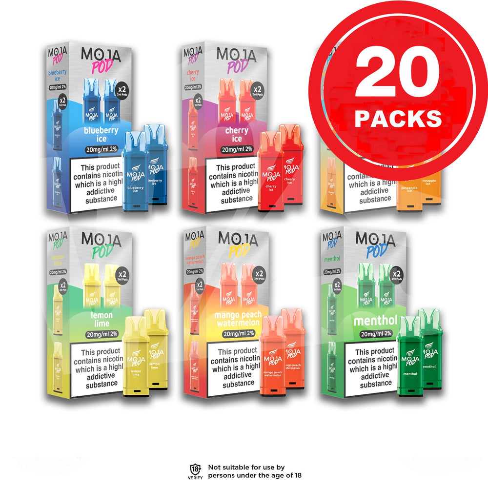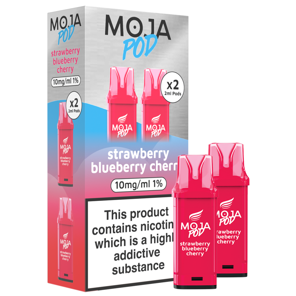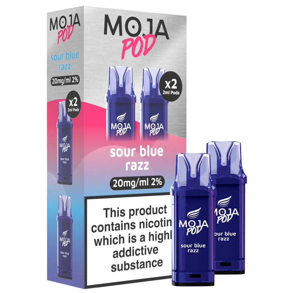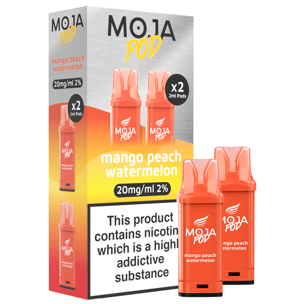 The MOJA Pod is a stylish, easy to use and colourful pod, perfect for those wanting to start their vaping journey or an experienced vaper looking for a discrete and lightweight vape. Each MOJA Pod Kit and Refill Pod kit comes pre-filled with 2ml of nicotine and a 500mAh re-chargeable battery.