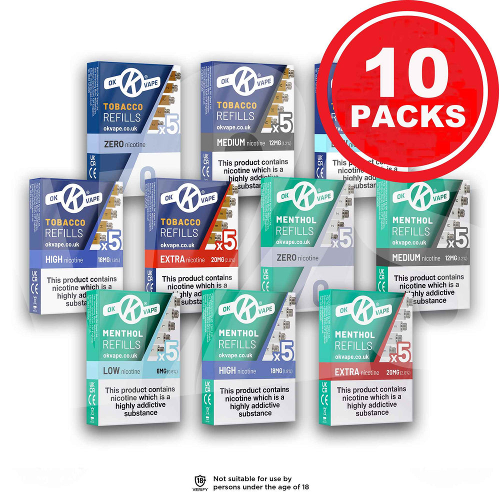 OK Vape Cigalike Refills x 10 Packs (50 Refills) TEN MOTIVES COMPATIBLE